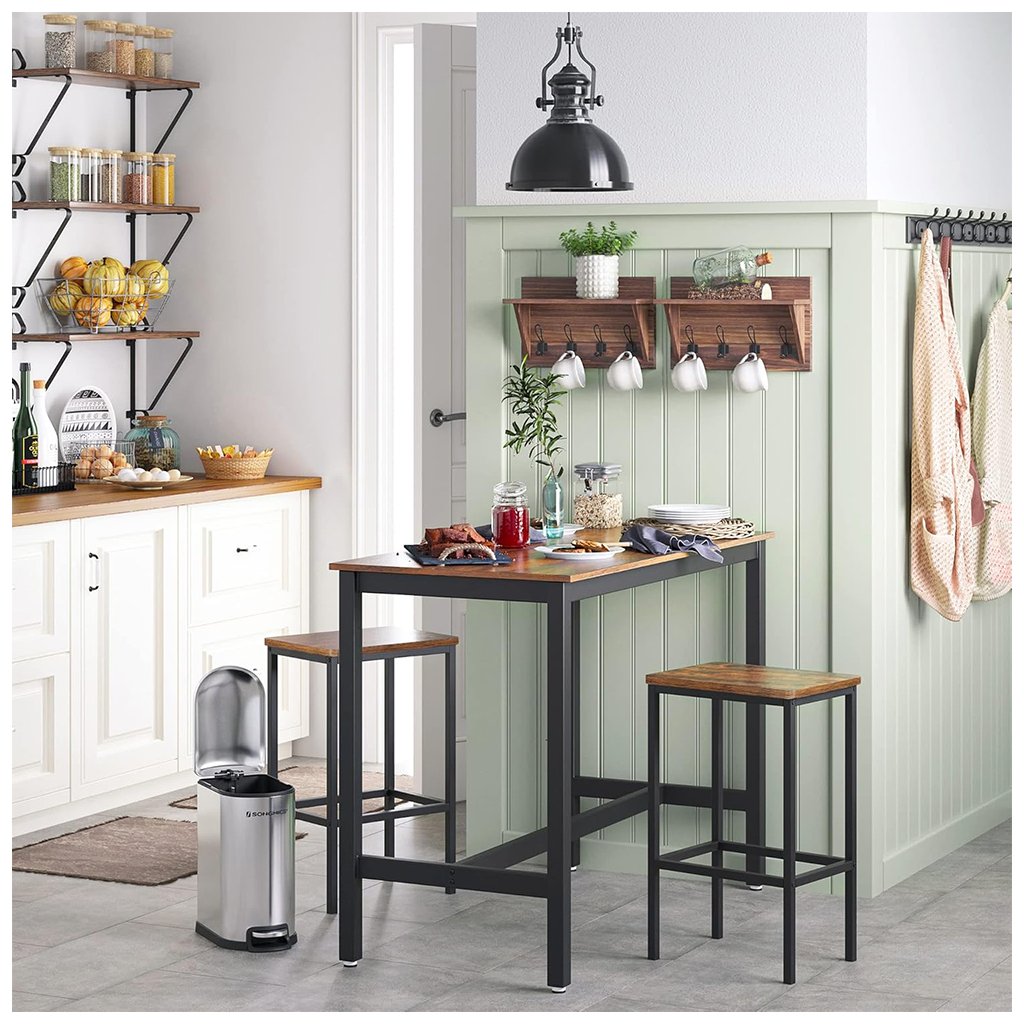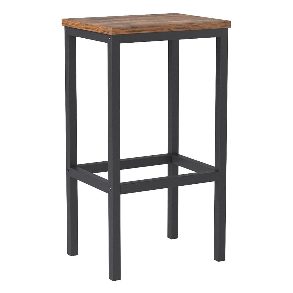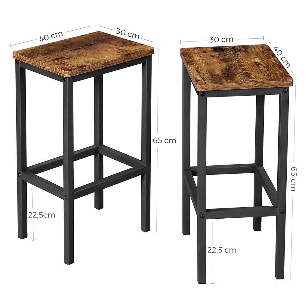 Rustikálně hnědá deska z dřevotřísky v kombinaci s černým ocelovým rámem dodává prostoru charakter a moderní industriální vzhled. Perfektní doplněk k barovému stolu nebo kuchyňskému pultu.