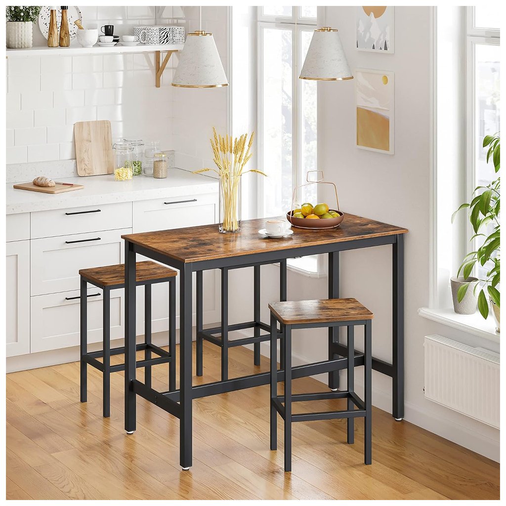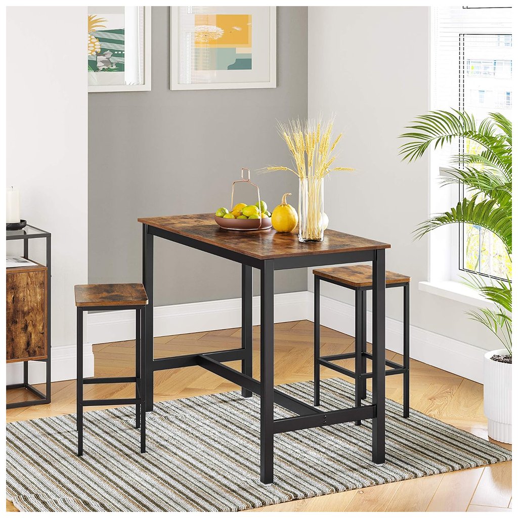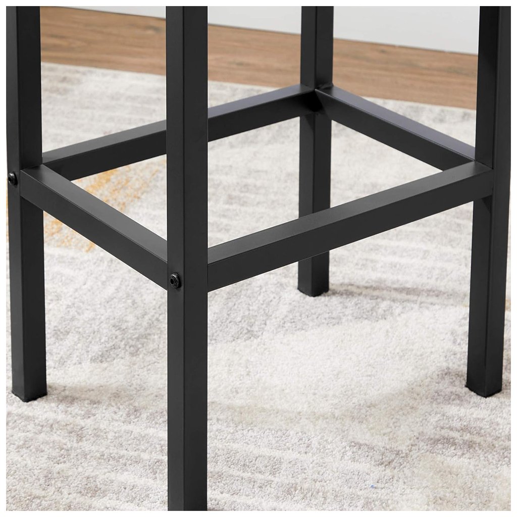 Rustikálně hnědá deska z dřevotřísky v kombinaci s černým ocelovým rámem dodává prostoru charakter a moderní industriální vzhled. Perfektní doplněk k barovému stolu nebo kuchyňskému pultu.