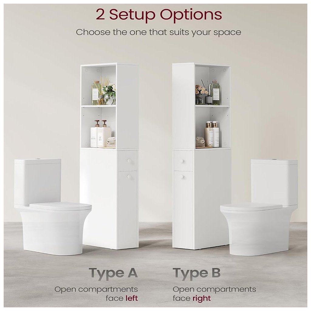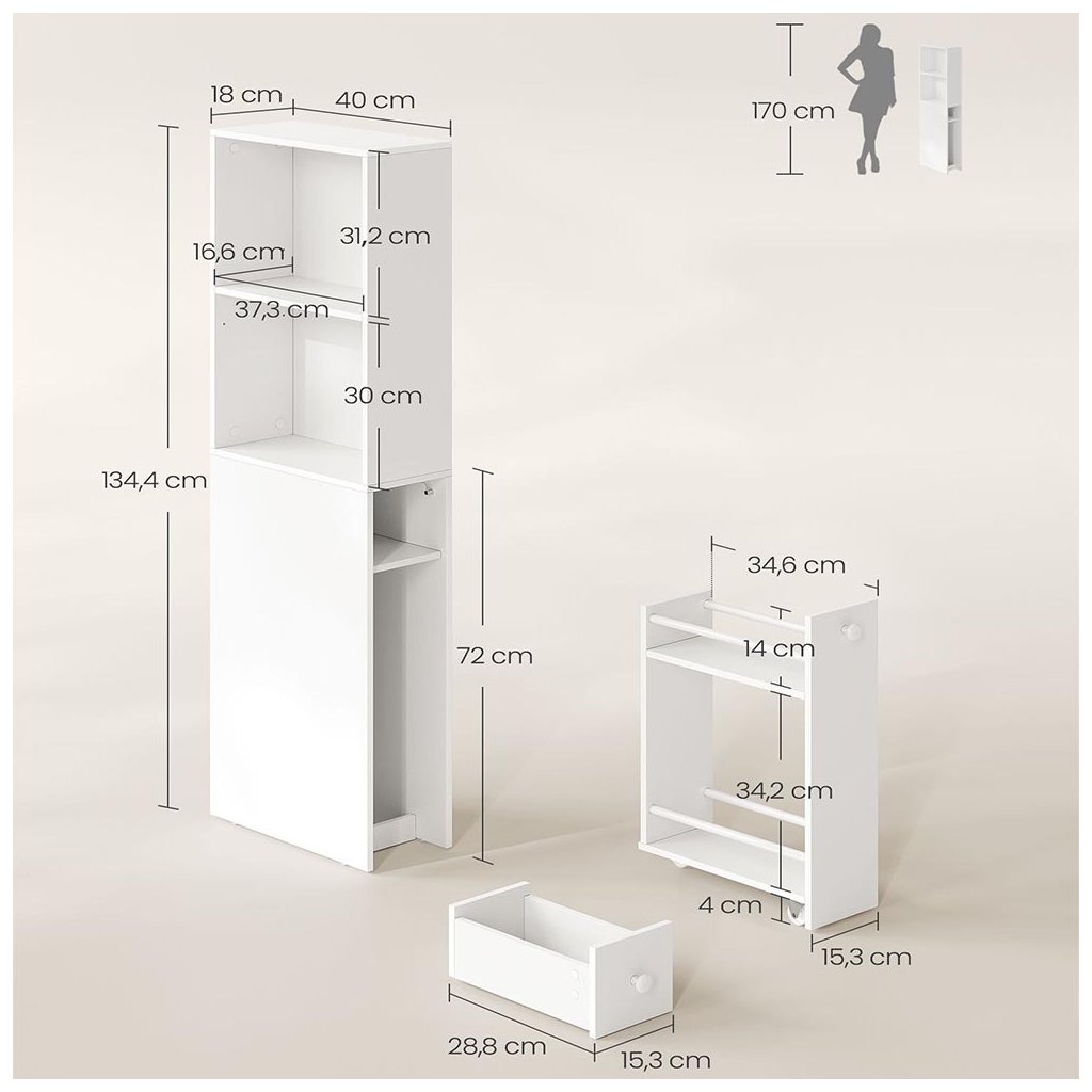 Tato úzká, ale vysoká koupelnová skříňka je navržena tak, aby maximalizovala váš prostor, ideální pro malé prostory v koupelně nebo úzké rohy mezi stěnou a toaletou.