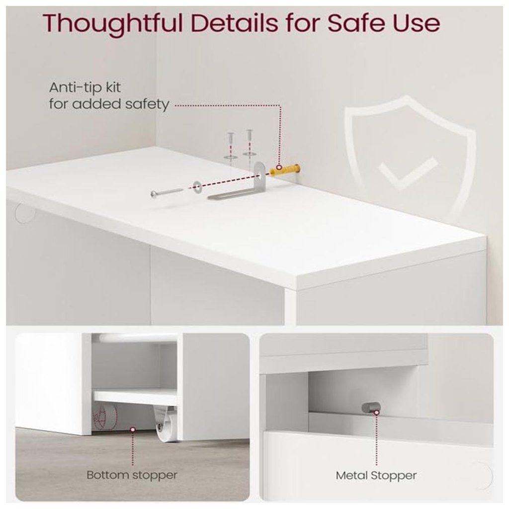 Komoda pevně stojí a je možné ji také pomocí přiložené ochrany proti převrácení připevnit ke stěně, aby se zamezilo nehodám.