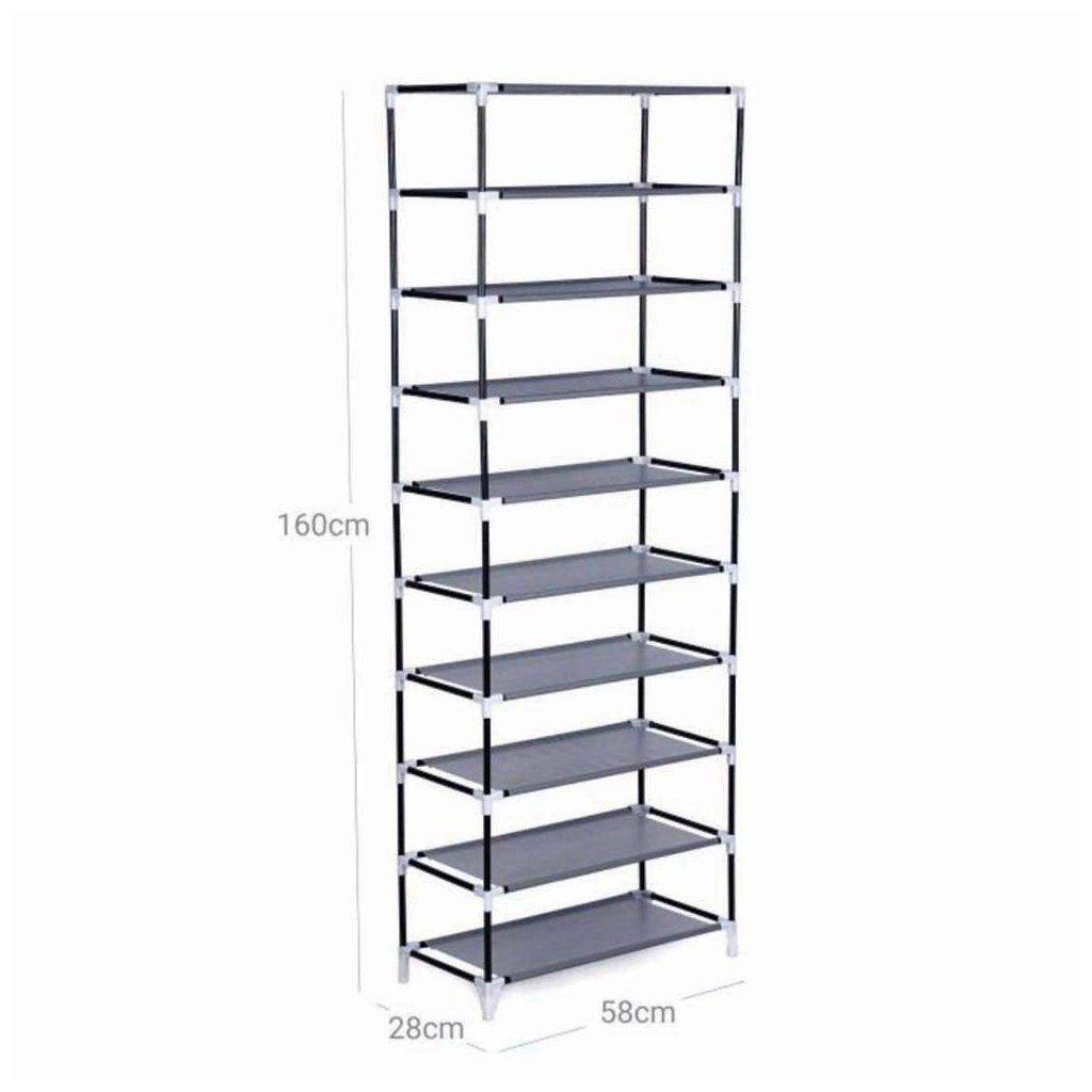 Tento botník o velikosti 28 x 58 x 160 cm pojme 3 páry bot na každou polici. Každá úroveň může být zatížena až 3 kg.