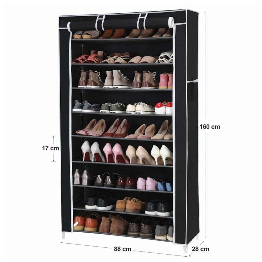 Tento botník o velikosti 28 x 88 x 160 cm pojme 4 páry bot na každou polici.