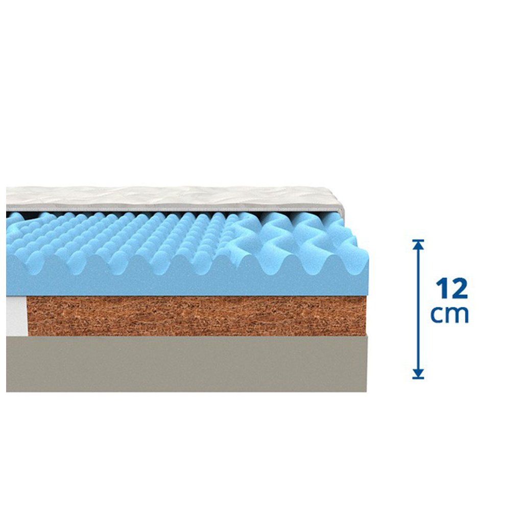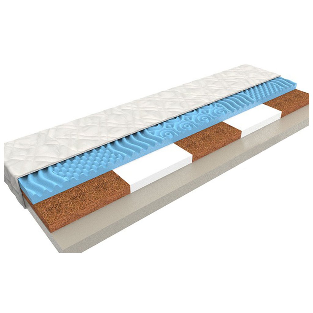 Matraci Coco Sensitive s výškou 12 cm a nosností 120 kg tvoří jádro vyrobené z kokosových vláken a pružné studené pěny. Tato kombinace zajišťuje matraci dokonalou prodyšnost. Na horní a spodní vrstvy je použita tepelně modifikovaná pěna optimální tuhosti. Horní vrstva profilovaná do 7 anatomických zón přispívá ke zdravému spánku a účinnému odpočinku. Tato hygienická matrace perfektně podepře vaše záda a postará se o důkladný odvod vlhkosti. Hodí se na jakýkoliv podklad - rošt či pevnou podložku. I potah si můžete vybrat podle potřeby, například alergicky neutrální a oddělitelný, který se dá vyprat pouze z jedné strany.