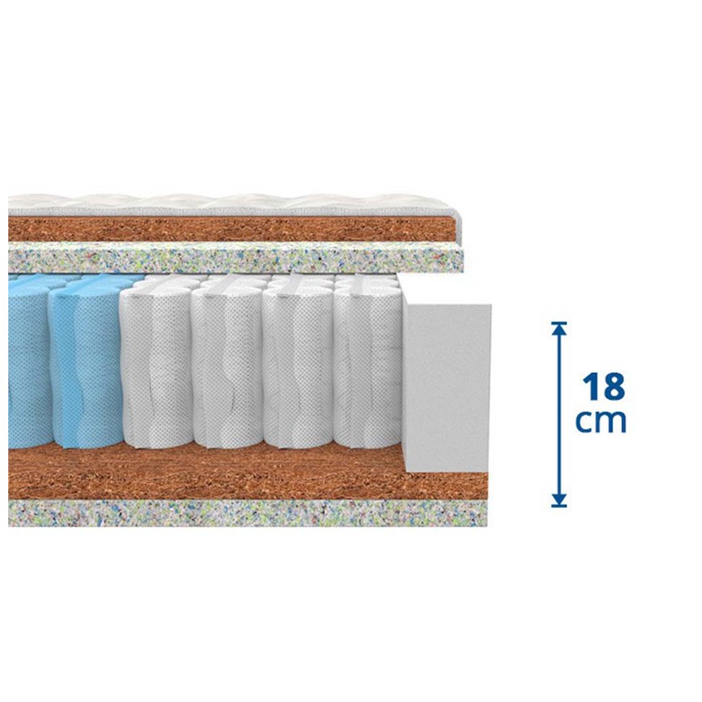 Taštičková matrace Ergonomy Plus má vysokou nosnost 150 kg, výšku 18 cm a vynikající ortopedické vlastnosti, díky nimž budete po nočním spánku jako znovuzrozeni. Je zhotovena z jádra, které tvoří taštičkové pružiny. Až 400 pružin umístěných v textilním obalu reaguje samostatně na tlak těla, zvyšuje bodovou pružnost matrace a tím umožňue optimální rozložení hmotnosti spícího. Horní vrstva matrace je tvořena kombinací desky z lehčené pěny a desky z kokosového vlákna. Tyto materiály vám umožní odpočinout si na letní nebo zimní straně. Ulehnutí na tuto luxusní matraci znamená zásadní krok ke klidným nocem a pohodovému vstávání.