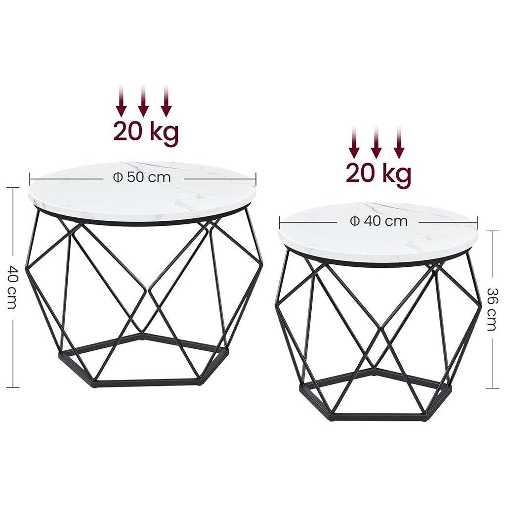 Sada 2 industriálních konferenčních stolků se silnými kovovými konstrukcemi a vysoce kvalitními dřevotřískovými deskami, které vašemu obývacímu pokoji propůjčí nový vzhled.