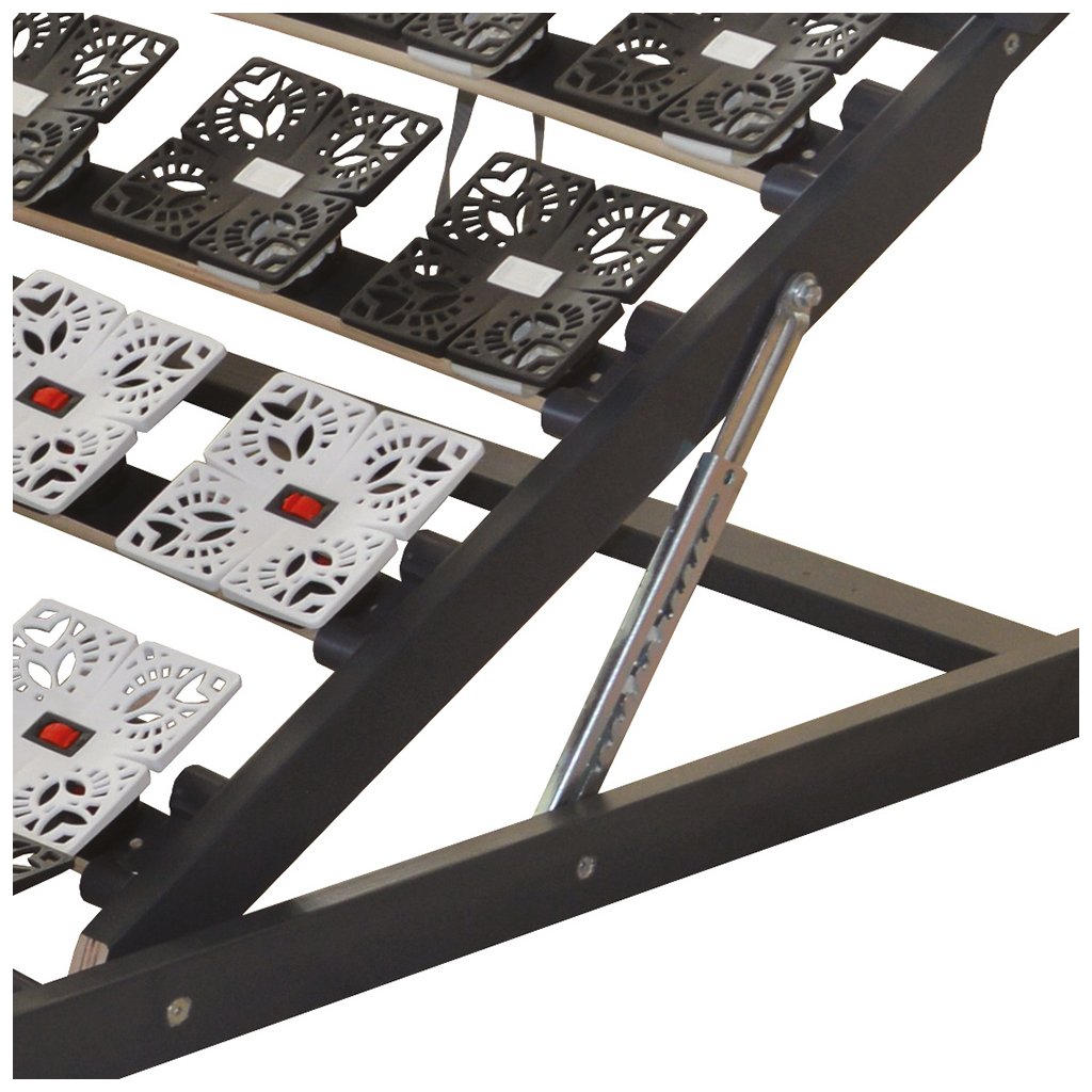 Polohování hlavy i nohou oceníte při komfortním čtení a odpočinku. Pevná středová část se postará o lepší oporu beder. Snadné nastavení polohování textilním úchytem při zdravotních obtížích a únavě. Lehací plochu tvoří výkyvné talíře, které podpírají tělo v každém bodu a individuálně reagují na danou zátěž. Talíře se pohybují ve všech směrech, čímž dokonale kopírují zátěž těla. Tuhost talířů lze individuálně regulovat jak v ramenní, tak i bederní oblasti. Bodové nastavení pružnosti talířů je značnou výhodou při výrazných rozdílech v proporcích těla (zdravotní handicapy, úzká ramena a široké boky apod.). Profilované talíře umožňují velmi dobré provzdušnění matrace a zvyšují tak hygienu lůžka. Dřevěný rám roštu je opatřen fólií, která zabraňuje pronikání vlhkosti do roštu a vytváření prostředí pro výskyt bakterií a plísní. Delší životnost matrace zajistí přídavná lišta, která matraci rovnoměrně podepře po celé její ploše a zamezí tak deformaci jejich okrajů.