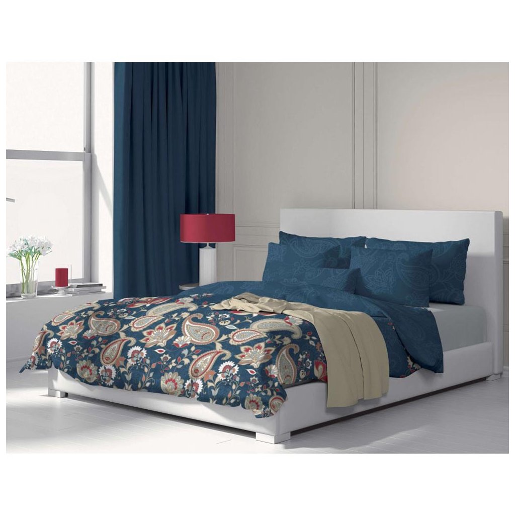 Povlečení ze 100% bavlny je vzdušné a příjemné na dotek. Povlečení OLYMPIA zdobí béžové ornamenty s vínovými, světle modrými a bílými detaily na modrém, petrolejovém podkladu. V petrolejové barvě je laděn i povlak na polštář.