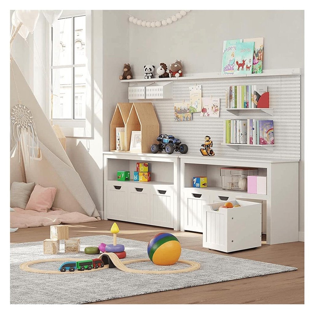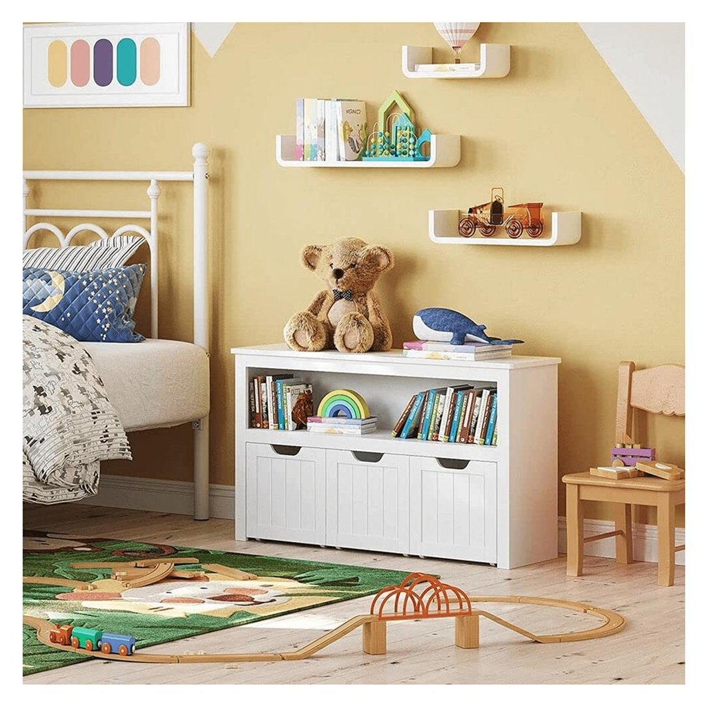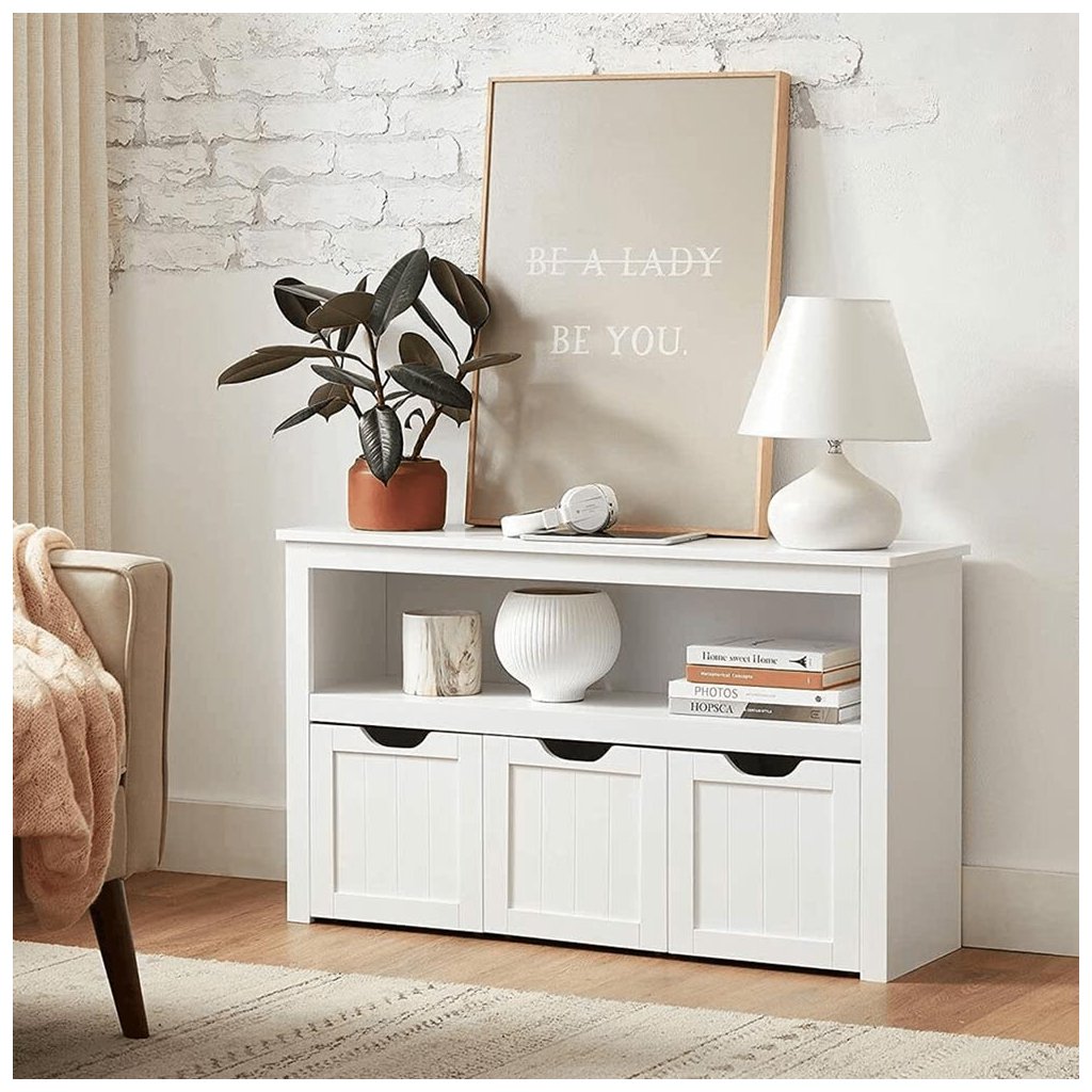 S touto úložnou skříňkou uklidíte všechno. Díky bílému povrchu a jednoduchému vzhledu se hodí do vašeho obývacího pokoje, ložnice nebo dětského pokoje.